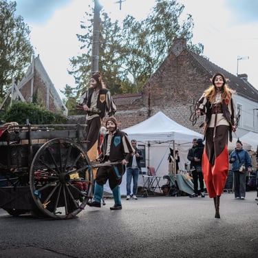Leur charrette, décorée de lanternes et de tissu colorés, devient un véritable théâtre ambulant où les lutins réalisent leurs performances.